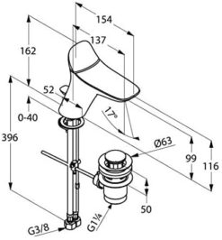 Thông số kỹ thuật Vòi chậu lavabo nóng lạnh Kludi 530230575