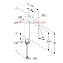 - Thiết kế: Vòi cao, với chiều cao dòng chảy 240mm và chiều rộng 170mm, phù hợp để lắp đặt trên lavabo hoặc các bề mặt tương tự.