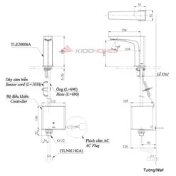 Bản vẽ kỹ thuật của vòi chậu rửa TOTO TLE20006A cảm ứng
