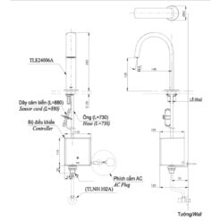 Bản vẽ kỹ thuật của vòi chậu rửa cổ cao cảm ứng TOTO TLE24006A