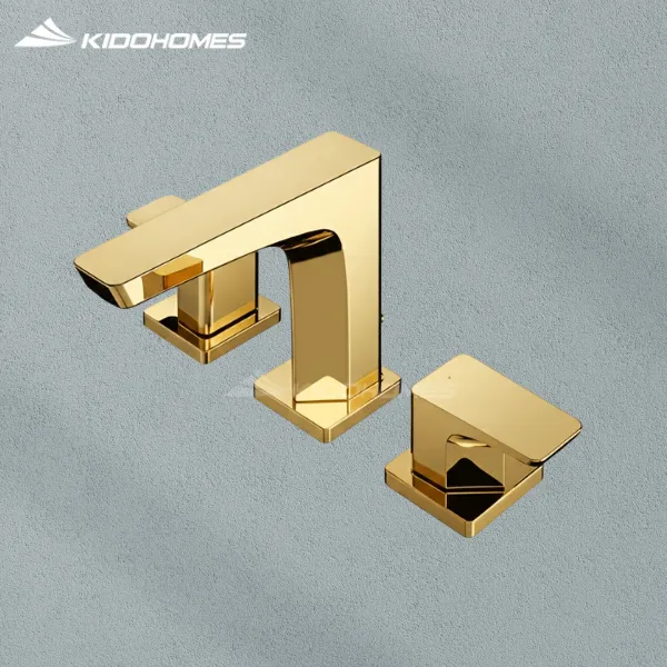 Dưới ánh đèn phòng tắm, bề mặt vàng Pháp bóng phản chiếu ánh sáng vừa đủ, tạo cảm giác sang trọng nhưng không phô trương, đủ để nâng tầm không gian mà không lấn át các chi tiết nội thất khác. Kiểu dáng tổng thể của vòi: