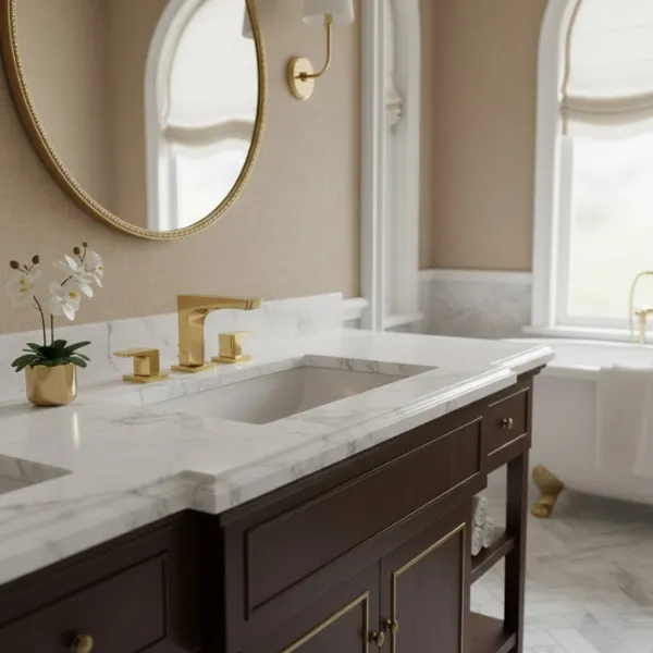 Vàng Pháp bóng – Điểm nhấn nâng tầm toàn bộ không gian lavabo
