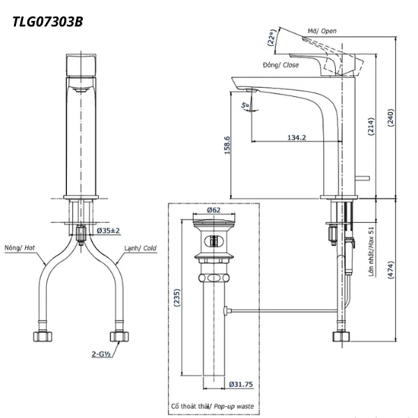 Bản vẽ kỹ thuật của vòi chậu nóng lạnh TOTO TLG07303B#PNVì sao TLG07303B#PN xứng đáng để đầu tư?