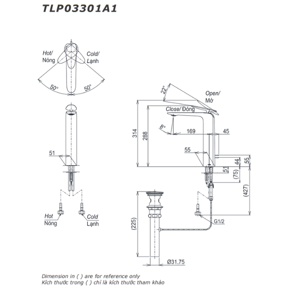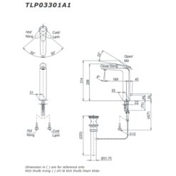 Bản vẽ kỹ thuật của vòi chậu nóng lạnh TOTO TLP03301A1#BGP