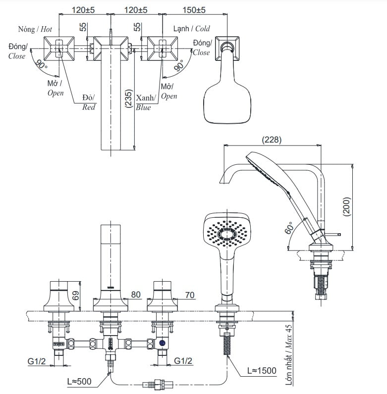 Vòi Xả Bồn Nóng Lạnh Kèm Sen Tắm TOTO TBG08202A