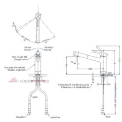 Bản vẽ kỹ thuật của vòi bếp nóng lạnh TKS05304J