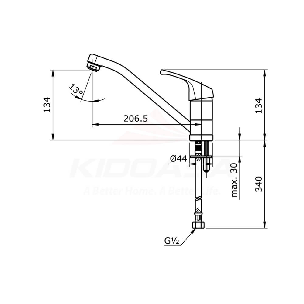Bản vẽ kỹ thuật vòi chậu rửa bát TOTO TX604KDN