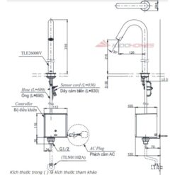 Bản vẽ kỹ thuật vòi lavabo TOTO TLE26008V cổ cao cảm ứng